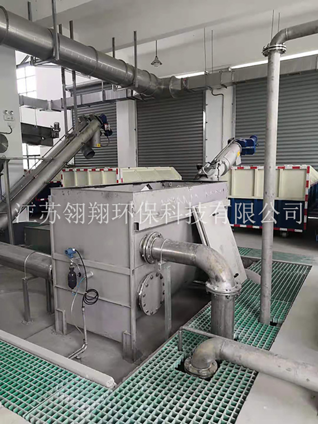 細(xì)格柵過(guò)濾裝置是安裝在不銹鋼箱體中。污水從開放式的篩筐頂端流入,然后穿流過(guò)篩網(wǎng)??蓪⒅睆酱笥?mm以上的固含物(短纖維,沉淀物質(zhì)、懸浮物質(zhì)及飄浮污)截流分離出來(lái)。還另外通過(guò)渣刷和洗刷棒的清理,將濾渣扔入安裝在篩筐內(nèi)中央的料斗之中,然后通過(guò)一中央絞龍送入密封式的上升螺管內(nèi)。濾渣則在螺管內(nèi)被進(jìn)一步傳送,壓榨,脫水,后落到有機(jī)柵渣渣斗內(nèi)。壓榨脫水后的濾渣固含量高達(dá)40%。