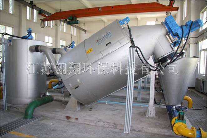 螺壓式污泥濃縮機(jī)是一種將稀槳液進(jìn)行機(jī)械性濃縮(稠化)的新型設(shè)備。以區(qū)別于傳統(tǒng)混凝土池并需配置大型濃縮刮耗構(gòu)成的濃縮池處理方法,而以獨(dú)特的新穎機(jī)械化、連續(xù)化、全封閉方式運(yùn)行。當(dāng)稀槳泵把固含量0.5%DS左右的稀槳液送入選定的主機(jī)時(shí),先進(jìn)入一圓形攪拌槽內(nèi),對稀漿液進(jìn)行緩慢攪拌,使其濃度均質(zhì)穩(wěn)定,對于需投加絮凝劑的稀漿液,在稀漿泵后面應(yīng)設(shè)置投藥點(diǎn)(本裝置系統(tǒng)也配置了可投干粉狀或液體狀絮凝劑的全自動(dòng)制備裝置和新型的投藥裝置),使溶藥后的稀漿液在攪拌槽內(nèi)進(jìn)行反應(yīng),同樣達(dá)到濃度均質(zhì)穩(wěn)定后,再通過溢水堰道進(jìn)入選定的型壓榨主裝置。壓榨主裝置的絮凝漿液經(jīng)壓榨轉(zhuǎn)動(dòng)作用被緩慢提升、壓榨,直到濃縮(稠化)固含量達(dá)到6%- 12%DS左右,過濾液則穿流篩網(wǎng)而排出。篩網(wǎng)的洗刷則是在運(yùn)轉(zhuǎn)過程中實(shí)現(xiàn),由于實(shí)現(xiàn)了轉(zhuǎn)動(dòng)自清洗、從而保證邊運(yùn)行邊清洗的理想運(yùn)行方式。此外,裝置內(nèi)還安裝有定時(shí)自動(dòng)沖洗器。濃縮后的污泥御入集泥漏斗,然后由污泥泵注入后續(xù)處理或進(jìn)一步脫水干化。